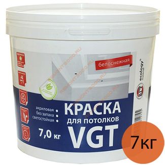 - ВГТ краска для потолков белоснежная (7кг) VGT краска для потолков акриловая матовая ВД-АК-2180 (7кг) по выгодной цене 342 р. руб.;