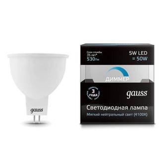 - Gauss Лампа cветодиодная диммируемая Gauss GU5.3 5W 4100K матовая 101505205-D ID - 236757 в каталоге Другие лампочки в России;