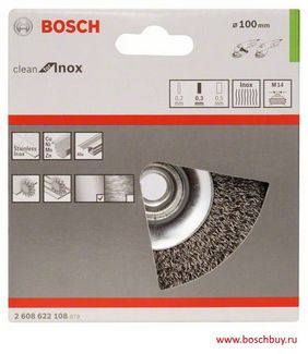 - Bosch Щетка коническая Clean for INOX М14 0.35х100 мм по нержавейке (2608622108 , 2.608.622.108) по выгодной цене 612 р. руб.;