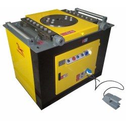 Станки для гибки арматурных сталей предназначены для предания металлу определенных заданных исполнителем работ углов изгиба. Основная область применения данного оборудования на заготовительных участках заводов ЖБИ, домостроительных комбинатах, строительных объектах, в ремонтно-коммунальных службах.SB50D - станок предназначен для гибки стальной арматуры до 50мм, класса «А3» до 42мм. Гибочный процесс на необходимый угол происходит в автоматическом режиме, по достижении нужного угла, станок останавливается автоматически. Привод станка по трансмиссионному шестеренчатому типу. Для удобства использования подключена педаль управления станком, при этом руки оператора свободны. Отличительные особенности: возможность одновременной гибки до 8-ми стержней арматуры диск сгибания работает в режиме реверса на корпусе станка размещена таблица допустимых диаметров используемой арматуры легкость настройки угла сгибания и простота в управлении станка станок оснащен съемными колесами. Для подъема краном предусмотрены специальные отверстия минимум технического обслуживания, замена масла в редукторе 1 раз в год возможность использования станка при минусовых температурах (температурный режим -10°С) станок имеет ручное и педальное управление электрический щиток оснащен устройствами защиты от токов короткого замыкания, перепадов напряжения. Предусмотрена защита двигателя.Станки серии SB50 предназначены для гибки арматуры диаметром от 10 до 50 мм. Необходима предоплата, мин. сумма заказа 500руб. Есть доставка.