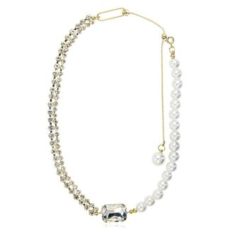 Материал: ювелирное покрытие чистым золотом толщиной 0.45 микрон, искусственный жемчуг. Длина: 31 + 11 см. Вставки: стразы. Длина колье регулируется скользящим замком. Изделие гипоаллергенно. None Возможен самовывоз. Есть доставка.