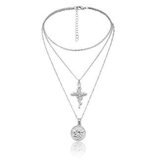 Многослойное колье под серебро (арт. 80985-7)