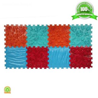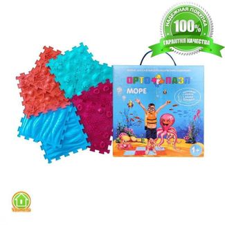 Страна-изготовитель: Россия"Для грамотного и разностороннего развития малыша! Коврик ортопедический модульный ТМ «ОРТО ПАЗЛ» - МИКС «Море» Этот живописный ортопазл сочетает в себе неординарные формы морского рифа, мягкие бурлящие волны и жителей морских просторов. Хождение малыша по всем модулям босиком стимулирует все биологически активные точки стопы. Этот удивительный коврик подарит море положительных эмоций вашему ребенку. Но главное – он развивает мелкую моторику, мышление и цветовосприятие. Тренирует вестибулярный аппарат, способствует развитию мышц стопы и голени, улучшает кровообращение голеностопного сустава, препятствует развитию ассиметричной ходьбы, уменьшает риск развития плоскостопия. Также доказано, что коврик обладает тонизирующим воздействием на организм. Перечислять полезные функции коврика можно очень долго, потому гораздо проще его купить, чтобы приступить к всестороннему развитию чада. Думаете, что ваш маленький привереда не захочет играть с данным изделием? Вы заблуждаетесь! В комплекте малыш найдет такие модули, которые точно вызовут у него положительные эмоции. Коврик не останется без внимания и будет использоваться очень часто. Яркая конструкция пригодится не только для веселых игр, но и защитит непоседу от любых ударов или падений. В комплект входят следующие модули (по 2 экземпляра каждого типа): Морское дно оранжевого цвета, повторяющее кораллы и морские ракушки; Океан бирюзового цвета с естественным рельефом и морскими обитателями; Морской риф рубинового цвета в мягком исполнении; Морские волны голубого цвета с амортизирующим эффектом во время тренировок. Показания Плоскостопие; Артрозное изменение суставов; вальгусная и варусная деформации; Технические характеристики Площадь: 0,5 квадратных метров; Размер одного модуля: 26 х 26 см; Количество модулей: 8 штук; Сос