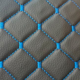 Черная стеганая Экокожа на поролоне Ромб с синей строчкой Высококачественный прошитый кожзаменитель на поролоне (толщина поролона 5 мм), турецкого производства широко применяемый в автомобильной промышленности, имеющий высокую износостойкость и эластичность. Произведен и прошит на современном оборудовании с ровными строчками и узорами. Идеально подходит для отделки потолка, боковых панелей и дверей.Главный плюс экокожи Ромб на поролоне в том, что, при обтяжке какой-либо поверхности, сглаживаются все неровности и поверхность становится мягкой на ощупь. Приятна на ощупь. Её свойства теплопроводности близки к древесине, коже, она «тёплая». Воздухо- и паропроницаема. Гигроскопична, то есть поглощает водяные пары. Неаллергенна, т.к. ничего из себя не выделяет в процессе эксплуатации. Применение экокожи: