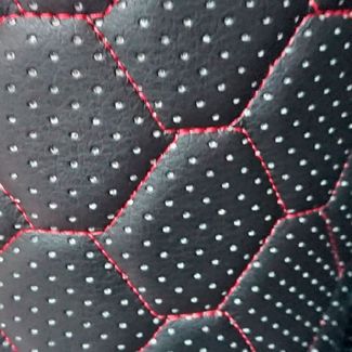 Экокожа стеганая перфорированная Черная сота (Красная строчка)