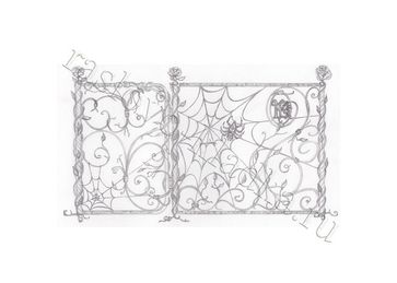 Решетка для камина кованая без защитной сетки с декоративным украшением стоек в виде роз, паутины и паучка None