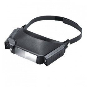 Налобная лупа MG81007 Подобная налобная лупа незаменима для слабовидящих людей при чтении, работе с мелкими предметами. Лупа позволяет не занимать руки и рассматривать предметы на разной кратности (сменные линзы). Сферы применения такой лупы обширны: чтение, радиотехнические и ювелирные работы, часовые работы, медицина. Характеристики: