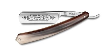 Бритва опасная Thiers Issard. Бритва выкована из 100% углеродистой стали C135. Такая сталь отличается повышенной прочностью и высокой твердостью. Размер лезвия - 6/8 дюймов (19мм). Черная электро-химическая гравировка марки на лезвии. Рукоятка бритвы изготовлена из настоящего белого коровьего рога. В комплекте идет черный чехол, изготовленный из коровьей кожи. Размер закрытой бритвы 16 см. None Возможен самовывоз.