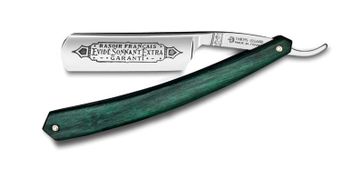 Бритва опасная Thiers Issard. Размер лезвия - 5/8 дюймов (15мм). Черная электро-химическая гравировка марки на лезвии. Рукоятка бритвы изготовлена из зеленой алмазной древесины. В комплекте идет черный чехол, изготовленный из коровьей кожи. Размер закрытой бритвы 16 см. None Возможен самовывоз.