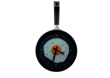 Часы настенные «Яичница на сковороде». Часы, выполненные в необычном дизайне, будут дополнять интерьер кухни и даже могут стать его «изюминкой». Вместо привычных стрелок на часах используются пластиковый столовые приборы: вилка и нож. Модель подвешиваются к стене за ручку. Питание: 1 элемент АА-типа. Размеры: диаметр 185х355х40 мм. None Есть доставка.