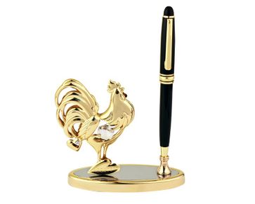 Держатель для ручки Crystocraft "Петух" на подставке, золотистого цвета, с кристаллами, сталь, ручка-роллер, цвет черный, 10.23.215.4 см. None Возможен самовывоз.