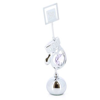 Держатель для визиток Crystocraft "Варежка" серебристого цвета с сиреневыми кристаллами, сталь None Возможен самовывоз.