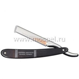 Шаветт DOVO Solingen - бритва со сменными лезвиями. Работает с обычными или удлиненными лезвиями, которые вставляются в держатель. Держатель для лезвия изготовлен из высокоуглеродистой стали. Рукоятка изготовлена из эбенового дерева с инкрустацией цвета серебра. Такая рукоятка приятна на ощупь и не искривляется под воздействием влаги. Шаветт – инструмент профессиональных мастеров– барберов и парикмахеров. None Возможен самовывоз. Есть доставка.
