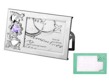 Фото рамка Crystocraft "Цветы" серебристого цвета с сиреневыми кристаллами, сталь None Возможен самовывоз.