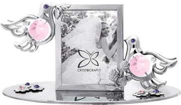 Фоторамка Crystocraft "Свадебные Голуби" серебристого цвета с розовыми кристаллами, сталь None Возможен самовывоз.