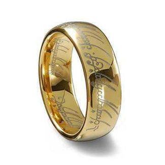 Материал: Карбид Вольфрама; Цвет: золото; Производство: Мордор; Ширина: 6 мм; Размер: 18 (Единый) Надпись (в переводе с языка Мордора): одно кольцо, чтоб править всеми, оно главнее всех, оно соберет всех вместе и заключит во тьме.