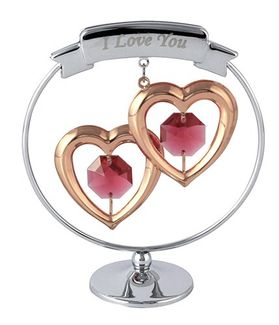 Миниатюра Crystocraft "Два сердца" розово-золотистого цвета с красными кристаллами, сталь None Возможен самовывоз.