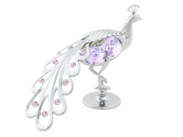 Миниатюра Crystocraft "Павлин" серебристого цвета с сиреневыми кристаллами, сталь None Возможен самовывоз.