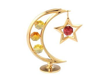 Миниатюра Crystocraft "Полумесяц" золотистого цвета с цветными кристаллами, сталь None Возможен самовывоз.