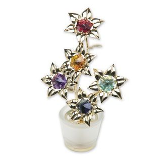 Миниатюра Crystocraft "Цветы в горшочке" золотистого цвета с цветными кристаллами, сталь None Возможен самовывоз.