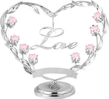 Миниатюра Crystocraft "Любовь" серебристого цвета с розовыми кристаллами, сталь None Возможен самовывоз.