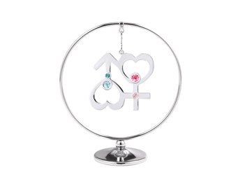 Миниатюра Crystocraft "Символы любви" серебристого цвета с розовыми и голубыми кристаллами, сталь None Возможен самовывоз.
