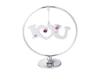 Миниатюра Crystocraft " I love You", серебристого цвета с розовыми кристаллами, сталь None Возможен самовывоз.