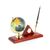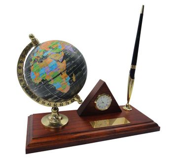 Настольный набор: глобус из пластика, ручка шариковая, цвет чернил - черный, часы из меди, на деревянной подставке, 23 x 9 x 1.8 см, дерево None Возможен самовывоз.
