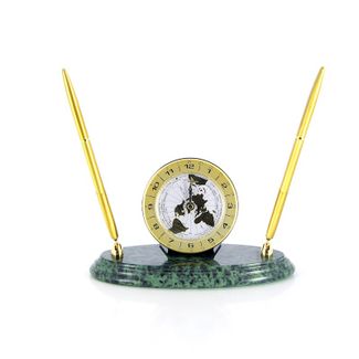 Настольный набор: 2 ручки шариковые, цвет чернил - черный, часы из пластика, на мраморной подставке, 20 х 9 х 1,8 см, мрамор None Возможен самовывоз.