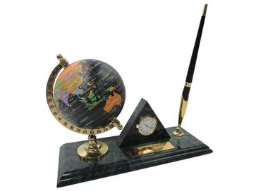 Настольный набор: глобус из пластика, ручка шариковая, цвет чернил - черный, часы из меди, на мраморной подставке, 23 х 9 х 1,8 см, мрамор None Возможен самовывоз.