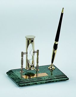 Настольный набор: ручка шариковая, цвет чернил - черный, песочные часы из латуни, металлическая пластина для нанесения гравировки, размер подставки 9х14,5х1,8 см, мрамор None Возможен самовывоз.