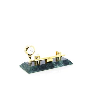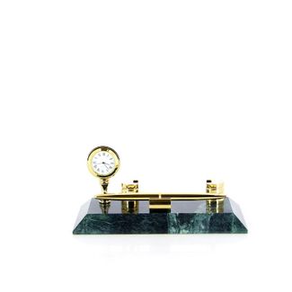 Настольный набор: ручка шариковая, цвет чернил - черный, держатель для визиток из алюминия, часы из меди, на мраморной подставке, 20 х 9 х 1,8 см, мрамор None Возможен самовывоз. Есть доставка.