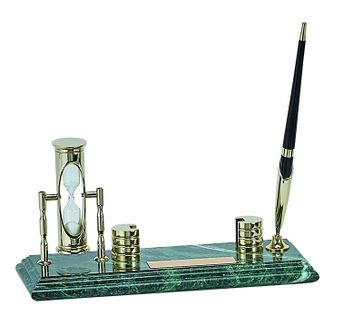 Настольный набор: ручка шариковая, цвет чернил - черный, песочные часы из латуни, держатель для визиток из алюминия, 9х23х1,8 см, мрамор None Возможен самовывоз.