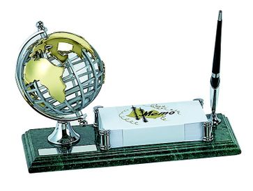 Настольный набор: ручка шариковая, цвет чернил - черный, держатель для визиток из алюминия, глобус из железа с гальваническим покрытием, 11х26х1,8 см, мрамор None Возможен самовывоз. Есть доставка.