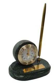 Настольный набор: ручка шариковая, цвет чернил - черный, часы из меди, на мраморной подставке, 14,5 х 9 х 1,8 см, зелёный None Возможен самовывоз.