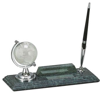Настольный набор: глобус из стекла, держатель для визиток из мрамора, ручка шариковая, цвет чернил - черный, на мраморной подставке, 23 х 9 х 1,8 см, мрамор None Возможен самовывоз. Есть доставка.