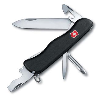 Перочинный нож CENTURION имеет 11 функций: 1. Фиксирующееся лезвие 2. Крестовая отвёртка 3. Консервный нож с: 4. – Малой отвёрткой 5. Фиксирующаяся открывалка для бутылок с: 6. – Отвёрткой 7. – Инструментом для снятия изоляции 8. Шило, кернер 9. Кольцо для ключей 10. Пинцет 11. Зубочистка Цвет рукояти: чёрный Рекомендуемые чехлы: 4.0822.N, 4.0822.L, 4.0482.1, 4.0547.3, 4.0537 Рекомендуемые аксессуары: Инструмент для заточки: 4.3311, 4.3323, 4.0567.32 Держатели на ремень: 4.1853,... None Возможен самовывоз.