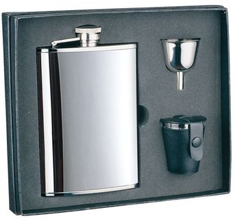 Набор подарочный SET2 (1508YA) S.Quire из фляги, воронки и трех стопок. Фляга, стаканчики и воронка изготовлены из металла, не портящего вкус алкоголя в течение длительного времени. None Возможен самовывоз.