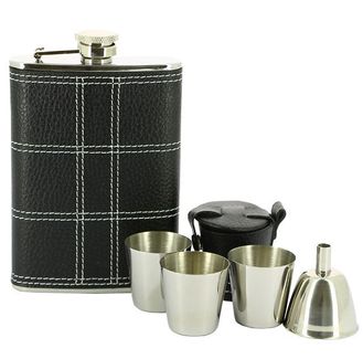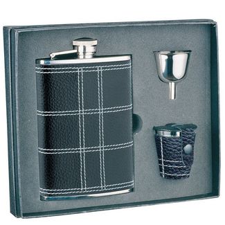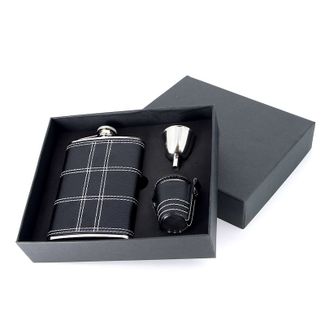 Подарочный набор S.Quire SET2 (TB08-3175) для мужчины включает в себя: флягу 0,18 литра, набор стаканчиков - 3 шт и воронку. Отдетка фляги натуральная кожа. None Возможен самовывоз.