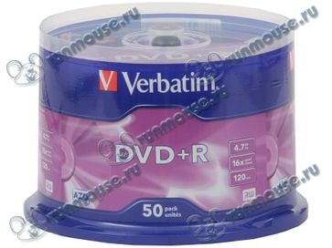 Закажите Диск DVD+R 4.7ГБ 16x Verbatim "43550", пласт.коробка, на шпинделе (50шт. уп.) [49638] у компании Runmouse в России на портале Alloy: