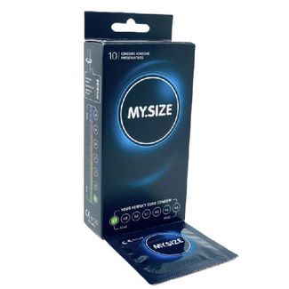 Уникальные презервативы MY.SIZE размерного ряда, разработаны при поддержке различных международных институтов, с учетом анатомических особенностей человеческого тела. В ходе опроса мужчин проживающих в различных странах было выявлено, окружность полового члена мужчины непропорциональна длине. Например, обладатель 47 размера имеет почти такую же длину, как и обладатель 69 размера. Измеряется не длина, а окружность полового члена, после чего присваивается размер. Что примечательно, размер не указывает на длину, а лишь на анатомическую особенность строения полового члена. Именно поэтому презервативы MY.SIZE идеальны для мужчин любого телосложения. Сделав замер всего один раз, мужчина становится обладателем своего размера MY.SIZE на все время Рекомендованы для полового члена с обхватом от 9 до 10 см Характеристики:
