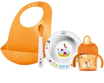 Набор для кормления Aventпоможет маме при кормлении малыша, проходя все этапы развития ребенка.Набор:Нагрудник для кормления резиновый ;Глубокая маленькая тарелочка 230 мл;"Волшебная"чашка-непроливайка (200 мл) c мягким носиком;Ложка с мягким основанием. Минимальная сумма заказа 500 руб.