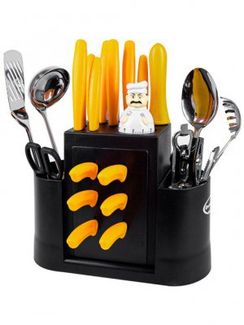 Технические характеристики:Производитель: Queen RubyМодель: QR-8271Материал подставки: пластикМатериал: нержавеющая стальОписание набора:Ножницы кухонныеКонсервный ножМясоразделочный ножНож для хлеба. Поварской нож Нож универсальный Нож для резки овощейСервисный ножНож гибкий для чистки овощейМусатТаймер. Ножницы кухонные Консервный ножОткрывалкаНож для удаления кожуры и шелухиЛопатка с прорезамиЛожка для спагетти Большая ложка с прорезямиВес: 3 кгГабаритные размеры упаковки: 16х16х42 см оплата нал/безнал, карта Возможен самовывоз. Есть доставка.
