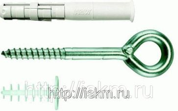 Анкер для строительных лесов 8х90 мм Анкерный крепеж для монтажа конструкций, креплений строительных лесов в бетон, полнотелый кирпич, естественный камень. Анкер для строительных лесов. Назначение: Шуруп-рым /шуруп с кольцом/ используется для крепления опорных каркасов и строительных лесов к бетону, природному строительному камню, кирпичной кладке, газобетону и т. д. Материалы: Дюбель для строительных лесов сделан из высококачественного полиамида (нейлона). Шуруп-рым сделан из оцинкованной стали. Особенности конструкции: система крепежа состоит из дюбеля с удлиненной нераспорной частью и специального шурупа.Дюбель имеет стопорный бортик и продольные фиксирующие ребра. Шуруп имеет монтажное кольцо диаметром 23 мм и резьбу в хвостовой части. Принцип работы: при ввинчивании шурупа дюбель распирается и надежно удерживается в просверленном отверстии. Стопорный бортик препятствует его проваливанию в просверленное отверстие. Продольные ребра предотвращают прокручивание конструкции. Крепление лесов осуществляется к кольцу шурупа. Свойства: дюбель долговечен, устойчив к воздействию внешней среды и перепадам температур от -40 С до +80 С. Заглушка закрывает отверстие в стене после снятия лесов, препятствуя нежелательному проникновению влаги (хорошее уплотнение достигается с помощью конструктивных пластинчатых ламелей на заглушке). Размеры шурупов GS с петлей (кольцом): диаметр от 8 до 12 мм, длина от 80 до 350 мм, внутренний диаметр кольца 23 мм. *цена указана без сто