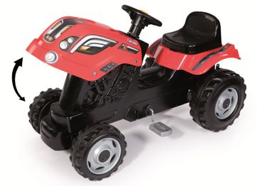 Трактор с педалями — прекрасная альтернатива велосипедам. Веселый педальный трактор оснащен прицепом. Капот открывается. На руле имеется клаксон. Сиденье регулируется. Игрушка предназначена для детей старше 3-х лет. Размер игрушки: 142×44×54,5 см. None
