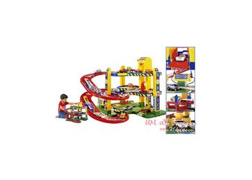 Описание: В комплекте: - 3 платформы; - 2 эстакады; - лифт-подъёмник; - бензозаправка с 2 заправочными пистолетами; - мойка с 3 поролоновыми валиками; - 2 шлагбаума; - подъёмник для диагностики или ремонта автомобиля; - 5 стоек; - 2 листа наклеек. Инструкция по сборке прилагается. После увлекательной сборки этой Парковки следует не менее увлекательное занятие по организации движения - наклеивание разметки, обозначений направления движения и пунктов обслуживания автомобилей. Указатели и разметка помогут маленькому автовладельцу грамотно организовать безопасное движение и обслуживание машин. На первом уровне Парковки расположены: - автоматическая мойка – машина просто проезжает между тремя свободно вращающимися валиками; - бензозаправка – заправочные пистолеты можно снимать и «заправлять» машину бензином; - подъёмник для сервисного осмотра или ремонта автомобиля – маленький водитель сам поднимает и опускает подъёмник; - заезд на площадку лифта-подъёмника. Все пункты обслуживания автомобилей имеют свободные заезды снаружи Парковки, а также подъезды при съезде с верхних уровней. На втором и третьем уровнях - стояночные места. Лифт-подъёмник доставит автомобиль на любой уровень Парковки. Чтобы поднять машину, нужно вращать ручку на верхнем блоке лифта – внутри будет наматываться верёвочка и платформа лифта начнёт подниматься. По длинным овальным эстакадам, расположенным снаружи Парковки, машинки весьма быстро скатываются вниз! Съезды с этажей на эстакаду ограничены шлагбаумами, которые маленький автовладелец (а может, и владелец Парковки) должен поднимать и опускать сам. Давай поиграем! На любом этаже для автомобиля найдётся удобное место для стоянки, а разметка и указатели подскажут схему движения. Водитель может спокойно заняться своими делами, а в это время его автомобиль будет находиться на охраняемой стоянке, проходить диагностику или ремонт. Вымыв и заправив свой автомобиль, самое время отправиться в увлекательное путешествие или продолжить делов