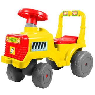 - Трактор-каталка для самостоятельного использования малышами от 12 месяцев. Благодаря высокой спинке, ребенку будет очень комфортно на этом тракторе. Эта каталка идеально подходит для катания дома, на детских площадках, во дворах и парках. Сначала трактор-каталку можно использовать для катания малыша по дому, а когда Ваш малыш подрастет, Вы можете смело использовать её для прогулок на улице. Для комфортной прогулки предусмотрены боковые подножки и удобная спинка сидения. Когда малышу всего полгода, каталка используется как ходунки, которая хорошо подойдёт для обучения первым шагам. А немного повзрослев ребёнок сможет ездить в машине-каталке без родительской помощи. Но и это ещё не всё. Под сиденьем каталки имеется багажное отделение, в которое Ваш ребёнок может сложить сво
