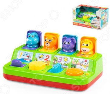 Игрушка развивающая для малыша POLESIE Игра с сюрпризом представляет собой игровую панель, на которой располагаются 4 фигурки зверей: бегемотик, мишка, слонёнок и жирафик, которые прячутся в специальные ниши. Каждому животному соответствует изображение цифры и игровой элемент. Цвет игрового элемента повторяет цвет ниши того животного, под которым данный элемент располагается. Веселый сюрприз в процессе игры Игрушка имеет два режима: стандартный, а также режим игры. Стандартный режим предполагает проигрывание мелодий и звуков, а также наличие подсветки во время игры. Всех животных нужно спрятать в ниши. Когда малыш приведёт в движение один из игровых элементов, животное соответствующее данному элементу Сюрприз! выпрыгнет из домика! Каждый элемент приводится в движение по своему, какой-то нужно толкнуть, какой-то повернуть, какой-то переключить, а на какой-то нажать. Такая игра развивает мелкую моторику рук малыша Работает игрушка от 3 батареек типа АА в комплект не входят . None Возможен самовывоз. Есть доставка.