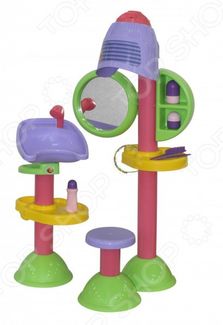 Игровой набор для девочки Полесье Парикмахерская Злата станет чудесным подарком для вашей маленькой принцессы. С ним у малышки появится возможность попробовать себя в роли стилиста и даже открыть свой собственный салон красоты. Теперь ни одна подружка и ни одна кукла не останутся без модных причесок. Подобные сюжетно-ролевые игры не только увлекательны, но и весьма познавательны для детей, способствуют развитию воображения, фантазии и когнитивного мышления. Игровой центр выполнен в виде сушилки для волос, раковины для мытья и стульчика. В комплект также входят различные аксессуары: зеркальце, расчески, обруч и косметические флакончики. Игрушки выглядят совсем как настоящие и отличаются прекрасной проработкой деталей. В качестве материала для их изготовления используется высококачественный нетоксичный пластик. Особенности и преимущества Набор из сушилки, мойки и стульчика. Яркий красочный дизайн. Высококачественный пластик. Хорошая проработка деталей. Подобные сюжетно-ролевые игры не только увлекательны, но и весьма познавательны для детей, способствуют развитию воображения, фантазии и когнитивного мышления. None Возможен самовывоз. Есть доставка.