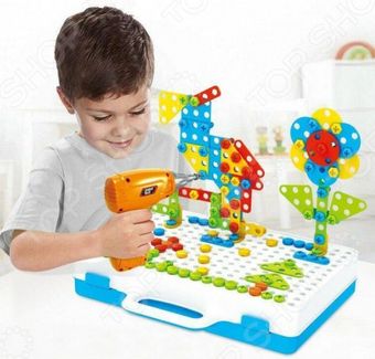 Конструктор-мозаика с шуруповертом Ricotio Creative Mosaic 1748091 станет замечательным подарком для любознательного ребенка. Такое развлечение по достоинству оценят не только мальчики, но и девочки. Игра развивает мелкую моторику, мышление, воображение и творческие способности. Чтобы малышу было проще творить, в комплекте предусмотрена инструкция с образцами, по которым можно собрать красочные узоры и объемные фигуры. Конструктор состоит из чемоданчика с отверстиями, в которые необходимо при помощи шуруповерта закручивать разноцветные шурупы, собирая мозаику. Благодаря большому количеству деталей, входящих в комплект, вы сможете хоть каждый день конструировать с ребенком новые и новые модели домов, животных, роботов, машин и многое другое. Шуруповерт может работать в двух режимах: закручивание или откручивание. Чтобы малышу было проще творить, в комплекте предусмотрена инструкция с 43 образцами, по которым можно собрать красочные узоры и объемные фигуры. Шуруповерт прекрасно дополняет игру и позволяет быстро и легко собирать и разбирать мозаики благодаря возможности менять направление вращения. В комплект набора входит удобный чемоданчик для хранения деталей, одна сторона которого выступает основой для сборки мозаики. Особенности и преимущества Инструменты и компоненты игрового набора подходят для маленьких рук и соответствующего уровня навыков детей. Творчество без границ Игрушка изготовлена из безопасных для детей и прочных материалов. Набор может быть использован для игр дома, а также для занятий в дошкольных учреждениях и развивающих секциях. Элементы выполнены в виде различных по форме геометрических фигур. Детали конструктора легко крепятся друг другу и легко разъединяются. Для работы шуруповерта необходимы 2 батарейки 1.5V AA, в комплект не входят. None Возможен самовывоз. Есть доставка.